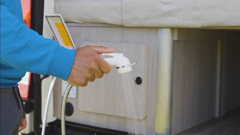 - Kit de ducha exterior con manguera de 2 metros en la parte trasera.