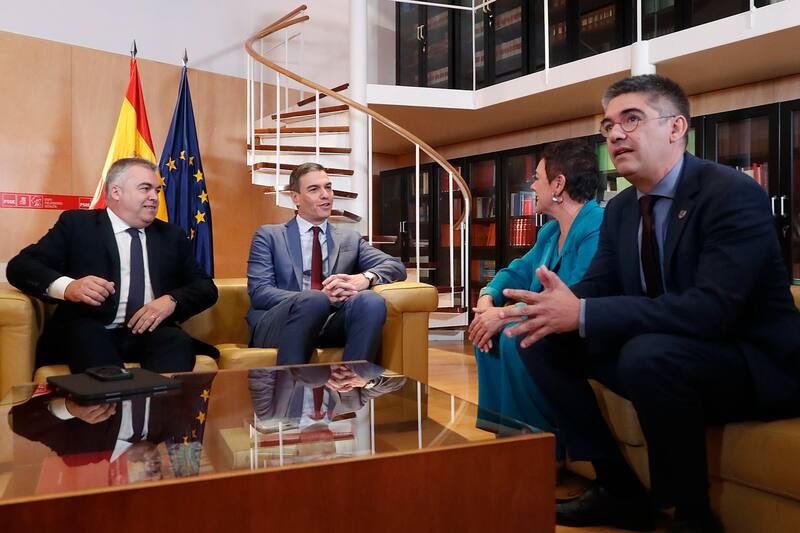 En su reunión de este viernes, EH Bildu ha confirmado su apoyo a Pedro Sánchez, expresando su disposición para respaldar su investidura y evitar así un Gobierno liderado por el PP y Vox. Además, le han comunicado su "plena disposición a volver a colaborar" en esta legislatura.