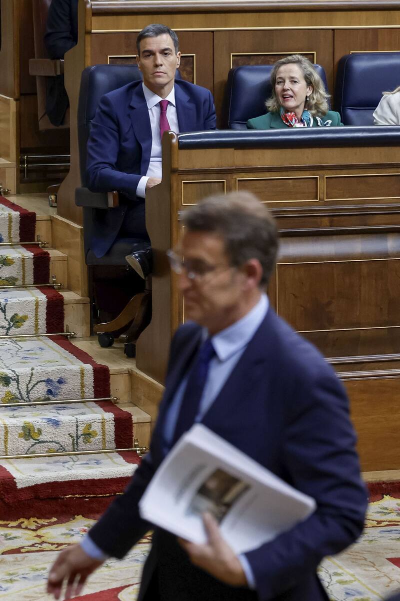 Feijóo se ha limitado a mostrar a la prensa su preocupación, tras la intervención por casi dos horas de Sánchez y antes de que el líder del PP se estrene en este debate de investidura al comienzo de la sesión vespertina.
