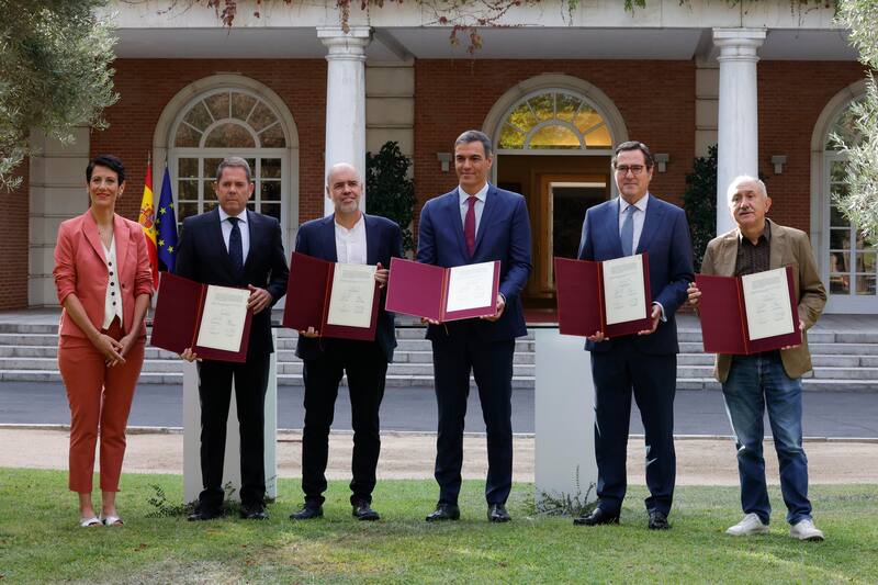 "Ningún acuerdo importante se alcanza sin esfuerzo", ha señalado Sánchez, quien ha agradecido y felicitado a los equipos negociadores de patronales y sindicatos, así como al del Ministerio de Inclusión.