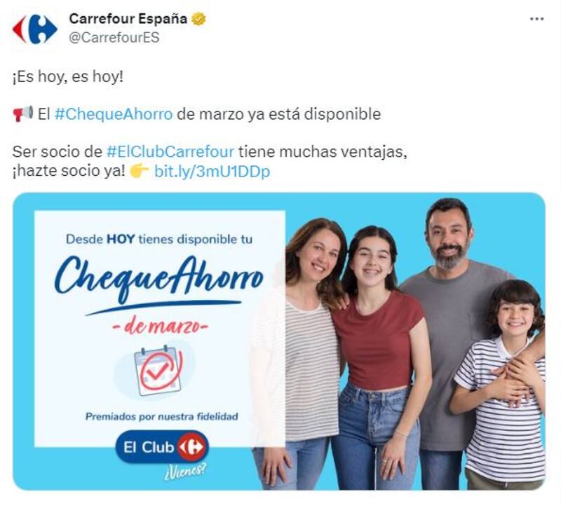 El Cheque Ahorro de Carrefour es bimensual y funciona desde hace dos años, pero no tiene una fecha exacta de entrega.
