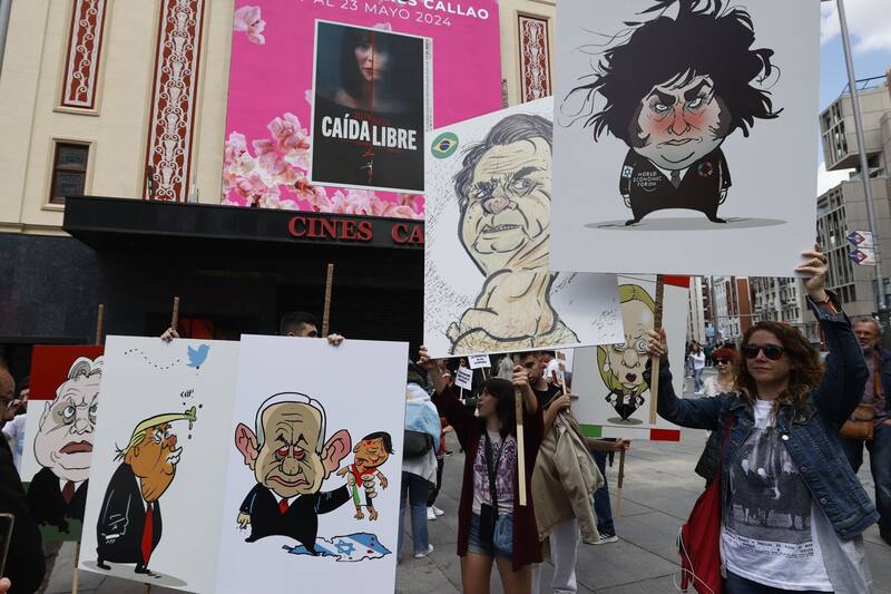 Convocados por La Plaza, una asociación universitaria ligada al entorno de Más Madrid y que fue fundada en septiembre de 2023, alrededor de dos centenares de personas se han dado cita en la madrileña plaza de Callao contra la visita de Milei, quien será uno de los invitados al acto de presentación del programa de las elecciones europeas de Vox, donde también acudirá la diputada de la Asamblea Nacional de Francia, Marine Le Pen, entre otros.