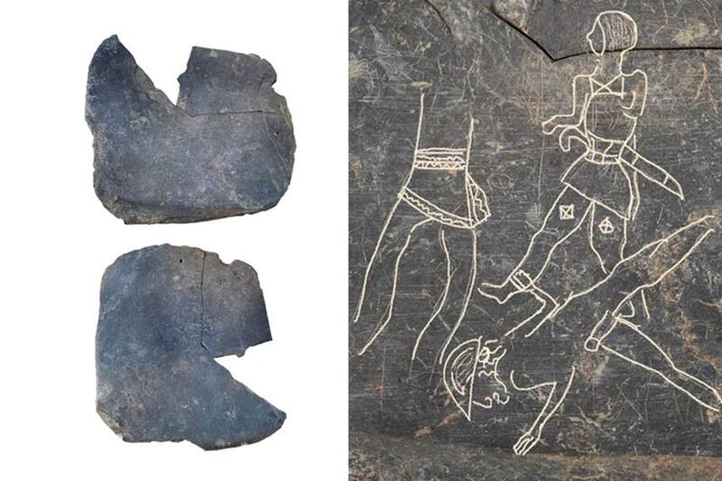 En rueda de prensa, el equipo de expertos del CSIC, ha destacado la importancia de la plaza de pizarra descubierta, que muestra a cuatro individuos que han sido identificados como guerreros, dada la vestimenta que los decora y las armas que portan.