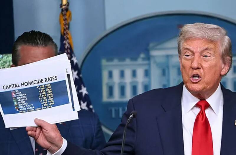 La mención se produjo durante una rueda de prensa en la que el mandatario presentó un plan para intervenir la Policía Metropolitana de Washington DC, justificando la medida con un gráfico comparativo de tasas de homicidios en distintas ciudades.