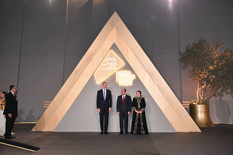 La inauguración del GEM fue una celebración cuidadosamente diseñada para proyectar una imagen de unidad internacional. Ultraligeros sobrevolaron el museo con el mensaje “Bienvenidos a la tierra de la paz”, mientras que más de 80 líderes mundiales (entre ellos el rey Felipe VI) posaban para la foto de familia frente a las pirámides de Guiza.