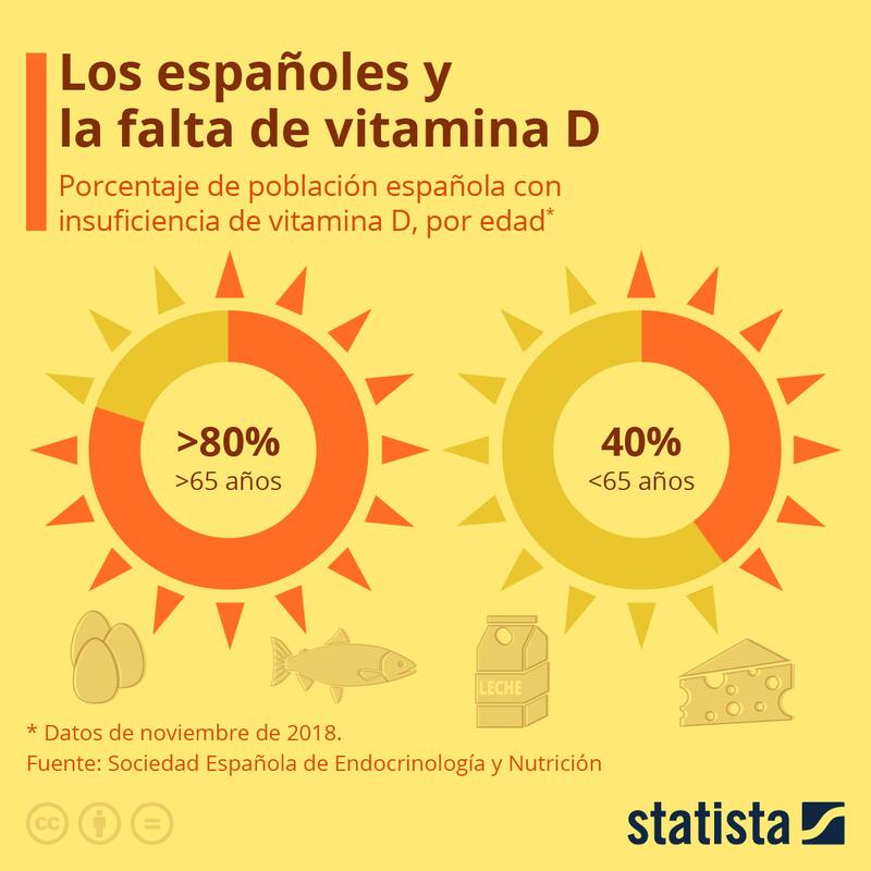 Según datos de la Sociedad Española de Endocrinología y Nutrición (SEEN), un 40% de la población menor a 65 años y más del 80% de los mayores de 65 tienen baja concentración de vitamina D.