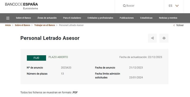 Más concretamente, la máxima entidad busca cubrir 13 plazas en el Departamento Jurídico y en la Dirección General Adjunta de Vicesecretaría General. Las funciones que deberá desarrollar el que consiga el empleo en el Banco de España son las de estudiar la normativa, resolver consultas, instruir expedientes administrativos, entre otras.