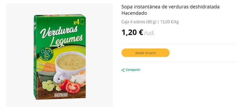Para complementar tu dieta está la sopa instantánea de verduras deshidratada de la marca Hacendado, uno de los alimentos más populares de Mercadona que es un aporte fundamental para quemar grasas.