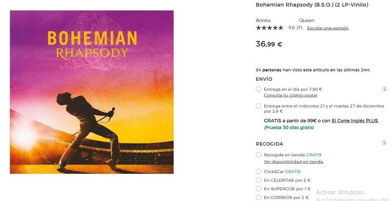 Se trata de dos LP en vinilo con la histórica banda sonora de la película que lleva el mismo título, en la que se narra la trayectoria de Freddie Mercury y sus compañeros en Queen. Está disponible en El Corte Inglés por solo 37 euros.