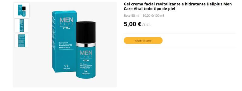 El gel-crema facial revitalizante e hidratante Men Care Vital de la marca Deliplus está fabricado para cualquier tipo de piel y se presenta en un envase de 50 mililitros, cuyo costo es de 5 euros. Entre sus características más sobresalientes se encuentran las siguientes: