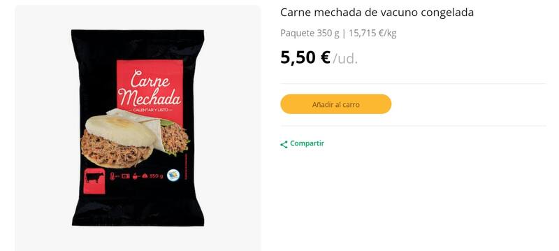Para los fanáticos de los productos vacunos llega este preparado a base de carne mechada, el cual viene en su versión congelada y cuyo paquete de 350 gramos se puede adquirir por tan solo 5,50 euros.