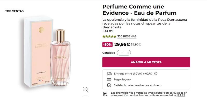 El nombre de este perfume floral es Comme une Evidence, perteneciente a la marca Yves Rocher, una de las más populares en Francia y dueña de muchos artículos exitosos. Sus ingredientes resaltan la frescura y la vitalidad propia de la estación más cálida, pero también cierta elegancia para quienes lo elijan.