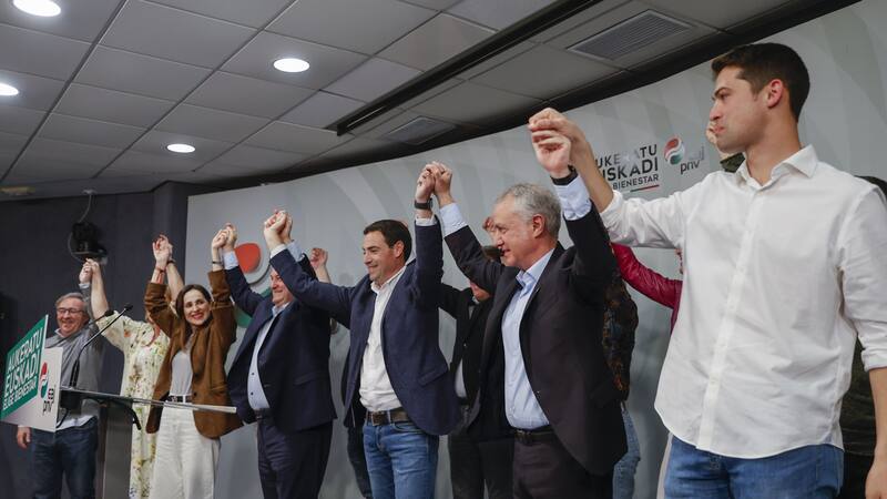 El presidente del PNV, Andoni Ortuzar, ya ha avanzado que asumirán la responsabilidad de formar gobierno que, según ha prometido, será "plural". El que con toda probabilidad será el nuevo lehendakari, Imanol Pradales, ha prometido que dará "todo por Euskadi, todos los días".