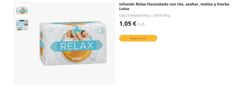 Se trata de la Infusión Relax con tila, azahar, melisa y hierba Luisa de Hacendado, una mezcla de ingredientes naturales cuidadosamente seleccionados para promover la relajación y el buen descanso.