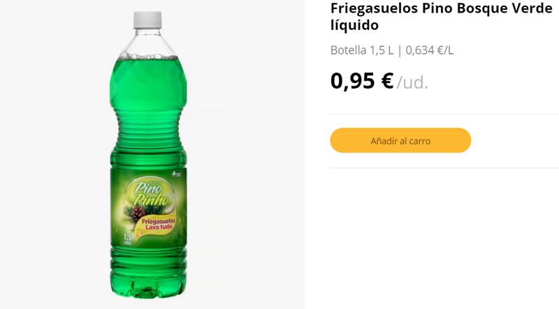 La empresa que preside Juan Roig tiene como propuesta en el mercado este imbatible en el mundo de los friegasuelos. Se trata Friegasuelos Pino Bosque Verde líquido, cuyo envase incluye un litro y medio de un concentrado aromático que dejará los pisos relucientes.