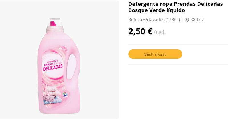 La reconocida cadena valenciana , tiene una sección de limpieza que se destaca por sus más de 400 productos de excelentísima calidad. Entre los productos favoritos de sus leales clientes se encuentra el detergente de ropa para prendas delicadas Bosque Verde líquido.