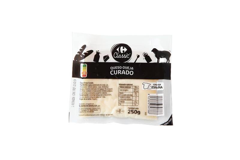 El supermercado ofrece el queso de oveja curado Classic' Carrefour es una opción ideal para comer en todo momento. Su sabor intenso lo convierte en un complemento ideal para comidas, ensaladas o para disfrutar con un vino.