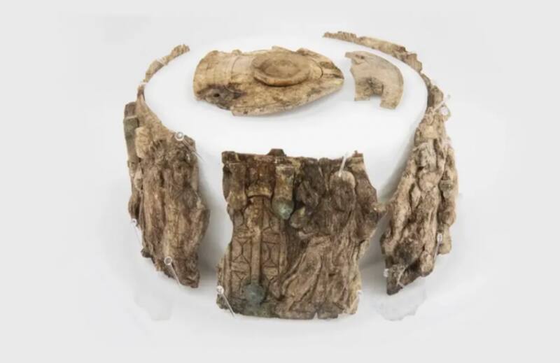 Dentro del santuario, se hallaron fragmentos de una caja de marfil específica conocida como píxide, que comúnmente se adornaba con imágenes cristianas y se utilizaba para resguardar reliquias.