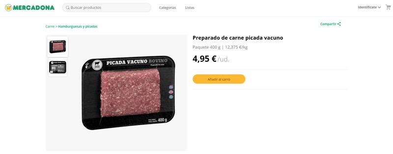 El preparado de carne picada de vacuno de Mercadona ha sido recomendado por El As Carnicero (@elascarnicero en redes sociales), quien resalta su calidad excepcional. Este producto se compone en un 99% de carne de vacuno, superando a muchas otras opciones del mercado que suelen incluir aditivos o ingredientes adicionales.