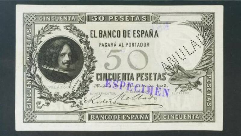 En este caso tiene un valor de 2250 euros. Que en su anverso aparezca el pintor Diego Velázquez no es su única particularidad. Además, no cuenta con la firma del cajero y en el centro aparece la marca "Especimen".