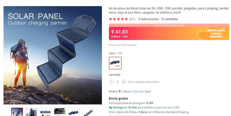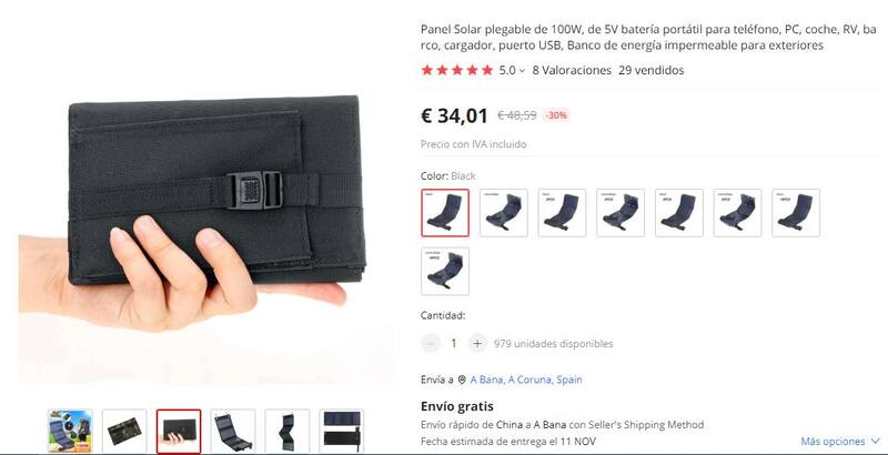 Las opciones de paneles solares portátiles están a la vista en AlíExpress. Hay una enorme variedad y cada quien puede optar de acuerdo a su necesidad en relación con la capacidad y el tamaño.