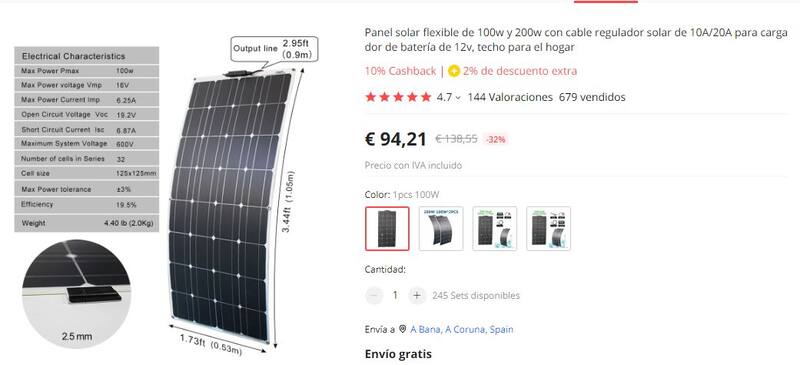 Panel solar de 94 euros