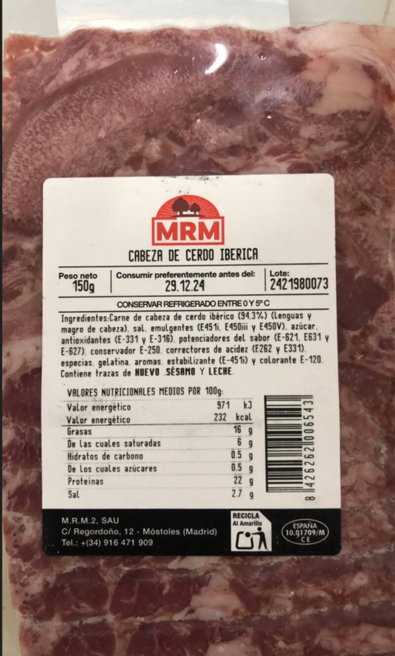 Los productos implicados en esta alerta son varias referencias de productos cárnicos de la marca MRM, que se venden en diferentes presentaciones y fechas de caducidad. A continuación, se detallan los productos específicos que han sido afectados por la contaminación con Listeria monocytogenes: