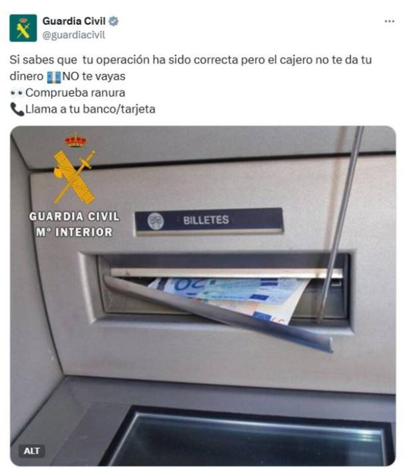 Que un cajero automático no entregue el efectivo tras una operación autorizada no es una situación tan rara. Por eso, la Guardia Civil insiste en que la prudencia es fundamental para evitar ser víctimas de errores o posibles fraudes.
