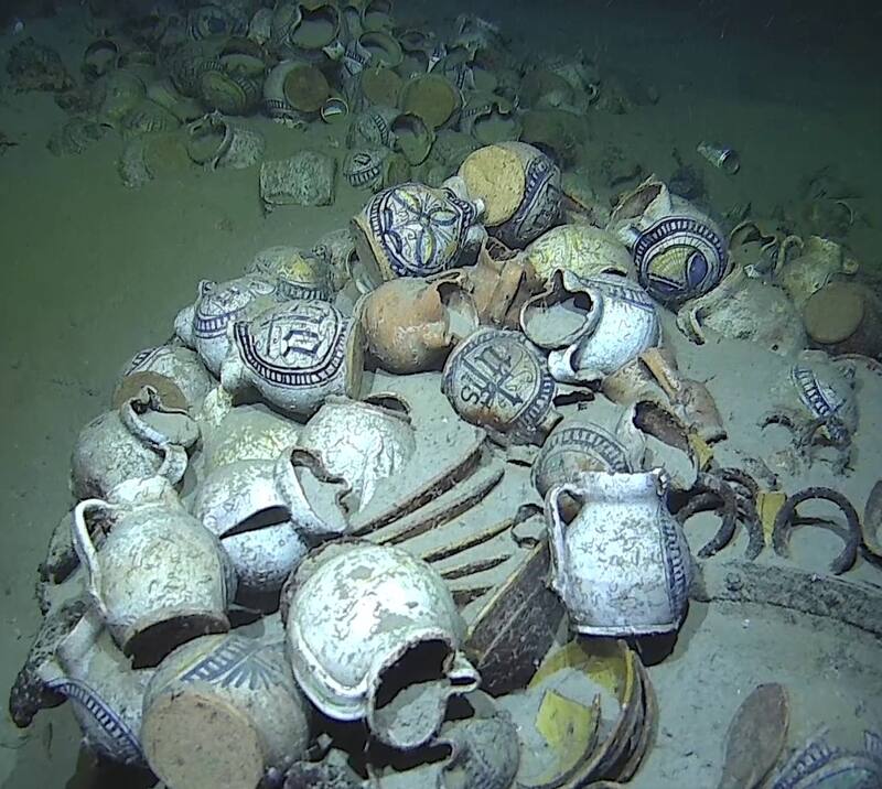 Cerámica decorada, representativa del comercio mediterráneo de la época.