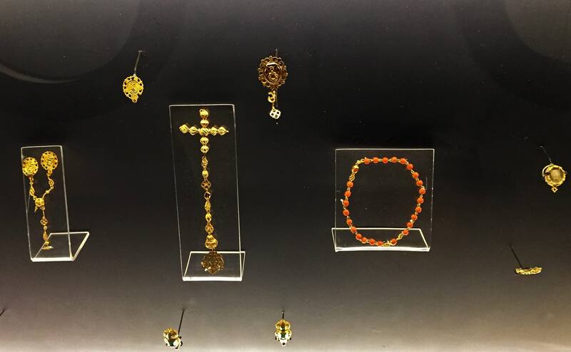 La exhibición incluye anillos, medallas, relicarios, rosarios, botones, hebillas de zapatos, mancuernillas y 15 mondadientes de oro, esmeraldas y diamantes, y forma parte de la exposición permanente "El tesoro de Alacranes", en el Museo de Arqueología Subacuática El Fuerte de San José El Alto, en Campeche.