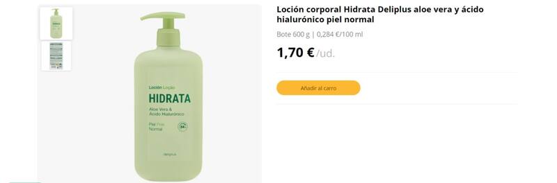 La Loción corporal Hidrata de la marca Deliplus para piel normal, la cual contiene aloe vera y ácido hialurónico, destaca durante este periodo estacional por su eficacia y por su valor, que actualmente está en 1,70 euros. Se trata de una opción que se ha vuelto popular por su capacidad para hidratar profundamente sin dejar residuos grasos.