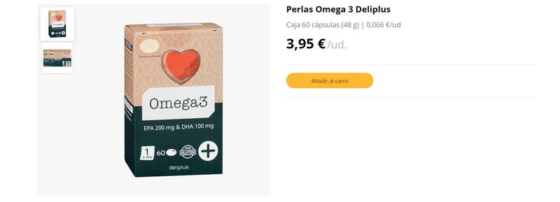 Mercadona vende las Perlas Omega 3 pertenecientes a la marca Deliplus, una alternativa de precio accesible que se presenta en una caja de 60 cápsulas y que pueden ser un buen complemento dentro de la dieta diaria.