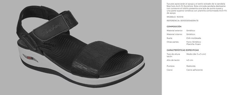 Se trata del modelo Arch Fit Sunshine, del cual se remarca su comodidad y ligereza, como también el estilo soleado del mismo. Cuenta con una correa en el tobillo, una tela de punto suave y una parte superior sintética con plantilla contorneada.