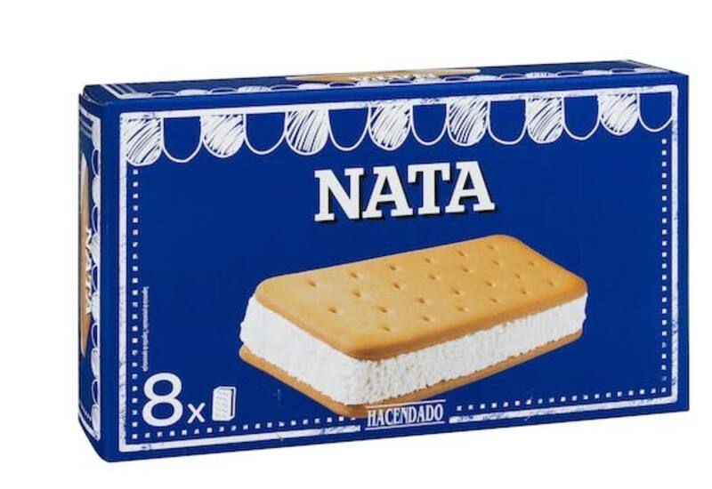 Otra de las alternativas es la caja de ocho unidades (800 ml) de Helado sándwich de nata Hacendado. Aunque su valor original es de 1,95 euros, Mercadona ha bajado su precio y lo vende a 1,75 euros.