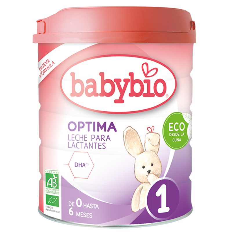 Para Babybio Optima 1, la información indica: “Número de lote y fecha de caducidad: 907179 y 01/10/2027”, también en envases de 800 gramos y con conservación a temperatura ambiente.