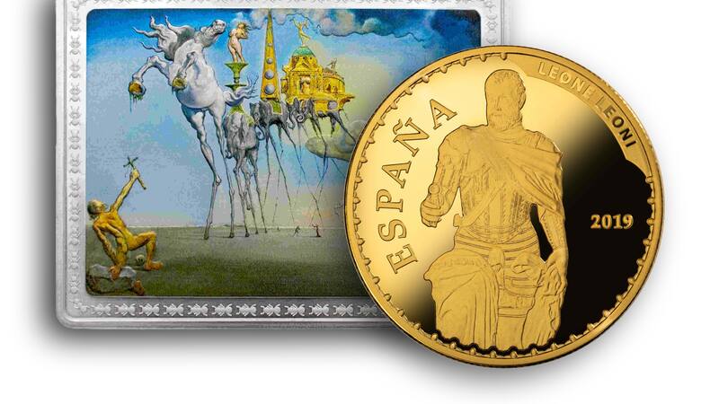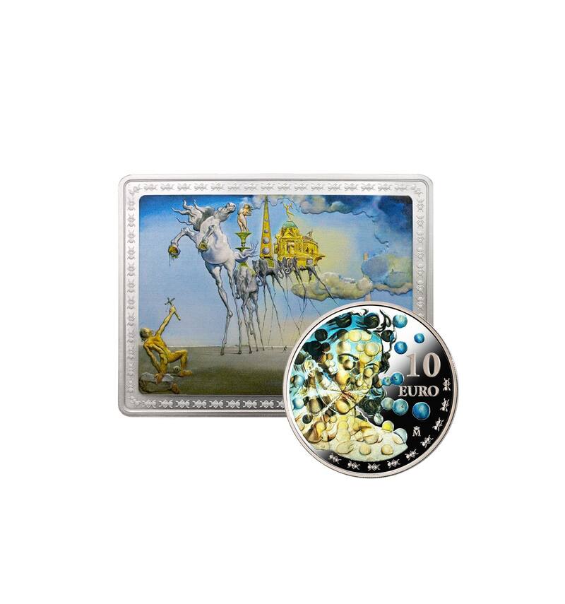 Emitida por la Real Casa de la Moneda, esta colección de dos monedas rinde homenaje a Salvador Dalí, el artista catalán precursor del surrealismo. En este caso, el set está compuesto por un ejemplar rectangular de medio kilo de plata pura, reproduciendo el cuadro "La Tentación de San Antonio" (1946) y una de 8 Reales en plata de ley, la cual contiene una alegoría a la obra del artista, llamada "La desintegración de la persistencia de la memoria".
