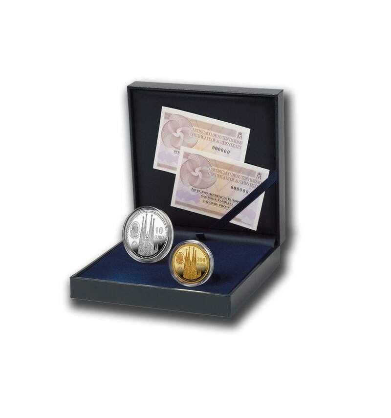 La colección consiste de 2 monedas: una de 10 euros, en plata de 925% y otra de 200 euros, en oro de 999%, ambas acompañadas de su correspondiente estuche y certificados.En ambos casos, el reverso de la moneda reproduce el «Temple Expiatori» de la Sagrada Familia, de Barcelona. Por otro lado, el anverso reproduce la efigie del Rey Juan Carlos I.