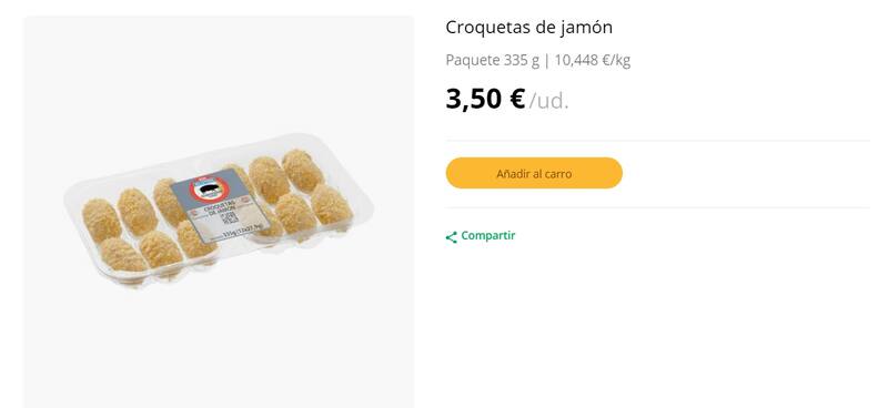 Se trata de unas croquetas en su versión refrigerada y que vienen en dos variedades: pollo y jamón. El paquete incluye 12 unidades que suman unos 335 gramos y tienen un precio de 3,5 euros cada uno.