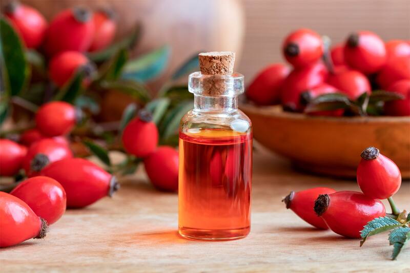 El aceite de rosa mosqueta se extrae de las semillas de la rosa mosqueta, un arbusto silvestre de flores rosadas y blancas que se cultiva en Chile y en otros países de Europa Central y del Este.