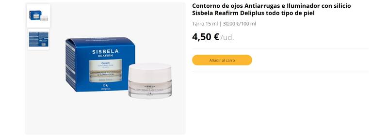 La propuesta en cuestión es el Contorno de ojos Antiarrugas e Iluminador Sisbela Reafirm de Deliplus, cuyo bote de 15 mililitros se encuentra disponible en los locales de la empresa y en su tienda web por 4,50 euros.