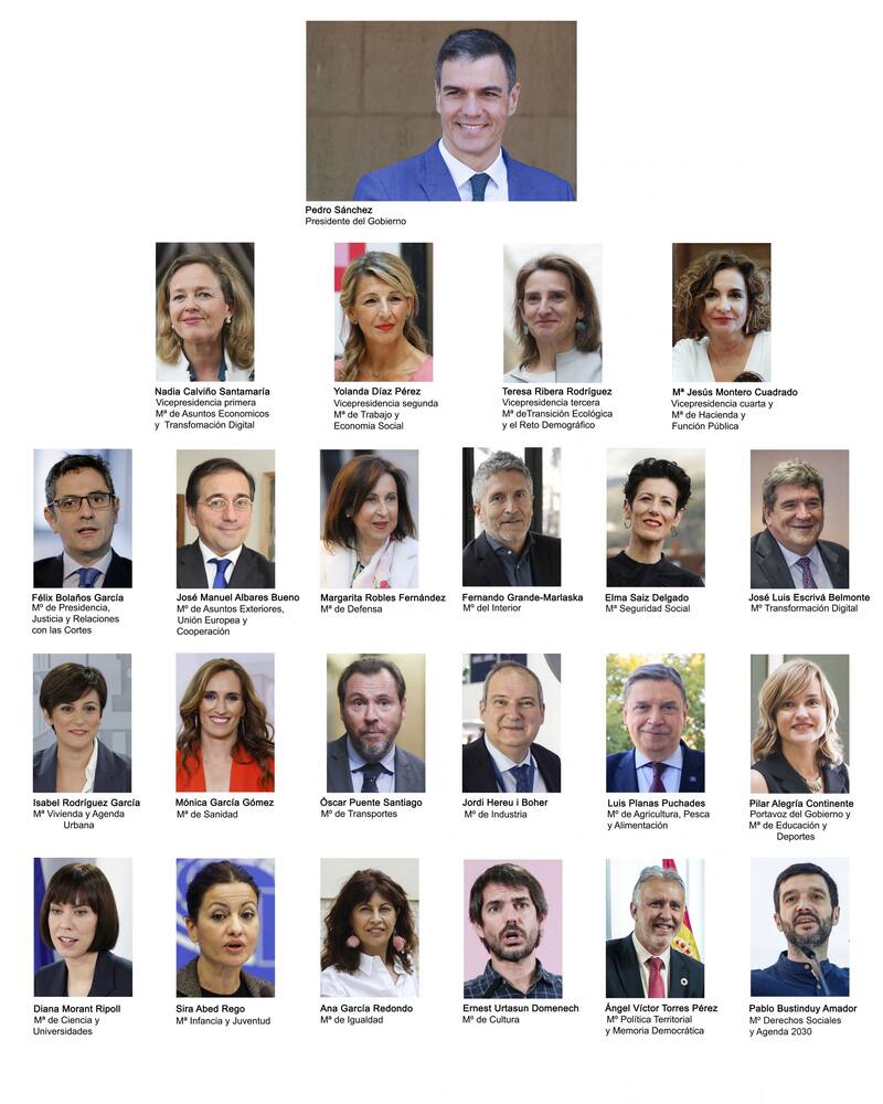 - Ministra de Vivienda y Agenda Urbana: Isabel Rodríguez (PSOE). Licenciada en Derecho en la Universidad de Castilla-La Mancha; fue alcaldesa de Puertollano, también concejal, senadora y portavoz.