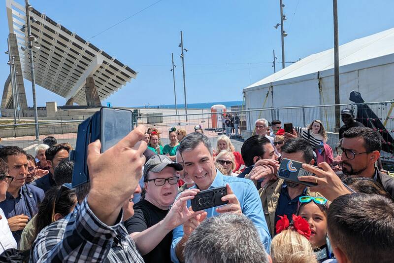 Sánchez se ha paseado por el recinto de la Feria de Abril, en el Parque del Fórum de Barcelona, mientras saludaba a los visitantes que se han encontrado con él por sorpresa, muchos de los cuales han coreado su nombre.