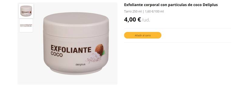 La crema en cuestión es un exfoliante corporal con partículas de coco de la marca Deliplus, que está diseñado para renovar la piel, eliminando las células muertas y dejando una textura más suave y luminosa. Este producto se destaca por sus ingredientes naturales, que proporcionan una exfoliación efectiva desde su primera aplicación.