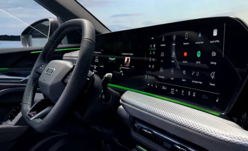 La pantalla curvada combina el Audi Virtual Cockpit Plus de 11,9 pulgadas y la pantalla central de 12,8 pulgadas, apoyada por un head-up display opcional.