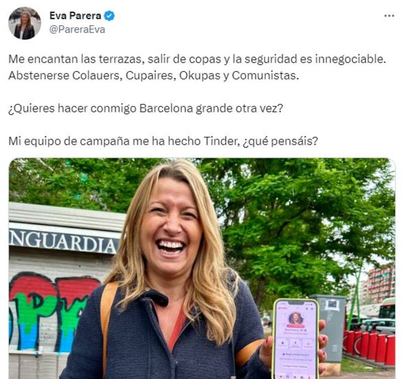 "La alcaldesa que estabas buscando. Me gusta conocer a otras personas de Barcelona, con ganas de mejorar la ciudad y disfrutar de sus calles y parques, pero más limpios", ha expresado Parera en sus redes.
