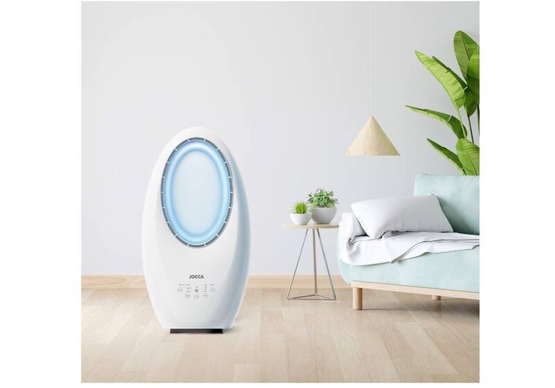 Ventilador de torre sin aspas de Jocca: este modelo también se ha ganado la preferencia de los usuarios por su potente flujo de aire y la posibilidad de ajustar sus velocidades. Su función de luz LED con colores intercambiables lo convierte en una opción decorativa, además de funcional.