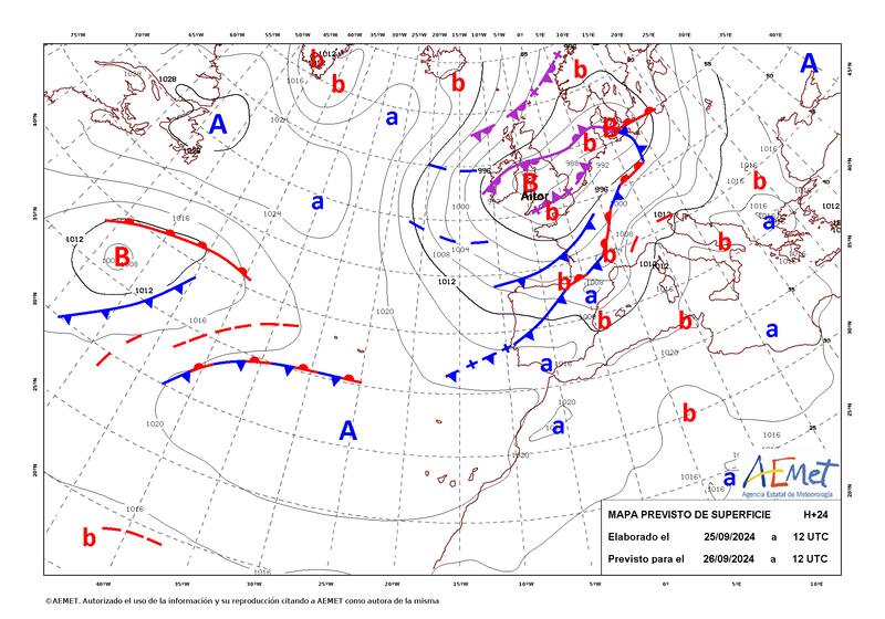La borrasca Aitor mantiene hoy a Galicia en alerta naranja -con riesgo importante- por lluvias de hasta 120 litros en doce horas, viento y oleaje, aunque en breve reducirá el nivel a amarillo, color que también han activado otras once comunidades del país, especialmente del noroeste por alguna o varias de esas inclemencias.