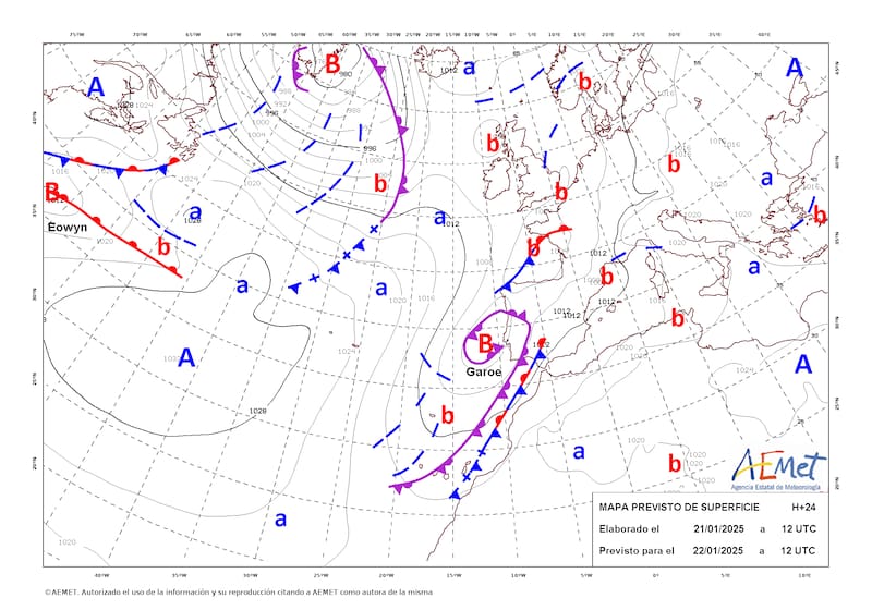 En Canarias, las lluvias se concentrarán en las cumbres y vertientes oeste y norte del archipiélago, con acumulaciones similares. Además, se prevé un fuerte temporal marítimo con olas de 4 a 5 metros, junto con tormentas que podrían ir acompañadas degranizo pequeño.