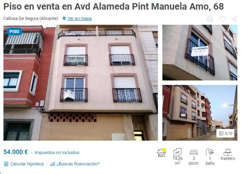 Por 54.000 euros, se encuentra este piso de 74.36 m2 situado en la localidad de Callosa de Segura.