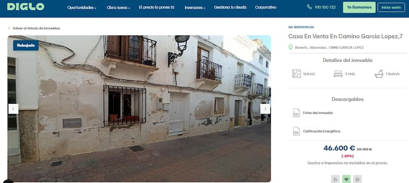 Por 46.600 euros, la entidad ofrece esta casa para rehabilitar en el centro de Albanchez (Almería), ideal para quienes buscan un proyecto de reforma en una zona tranquila y bien conectada. La vivienda se distribuye en varias plantas e incluye un amplio salón comedor con chimenea, cocina, dos dormitorios y un baño completo con bañera.